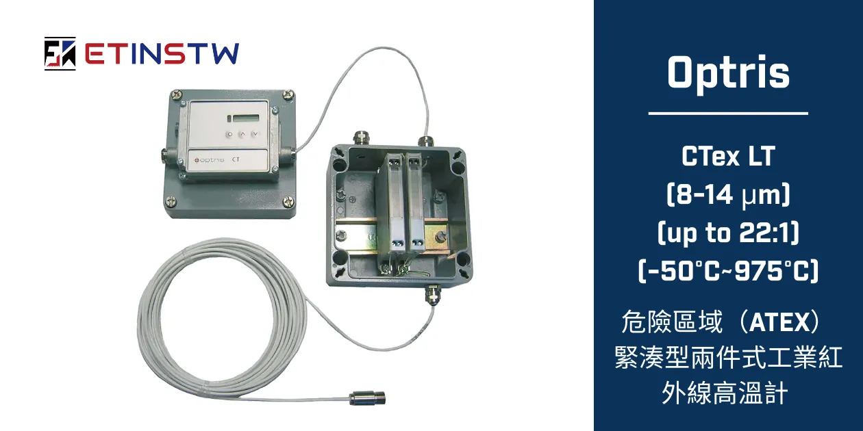 Optris CThot LT高溫計在極高溫度下表現出色,其感測頭具有卓越的耐溫性,無需額外冷卻即可在高達 250 °C 的環境溫度下正常工作。如此高的耐溫等級使其適用於多種應用,包括乾燥機、熔爐、塑膠和紡織品加工的熱處理過程以及半導體生產。